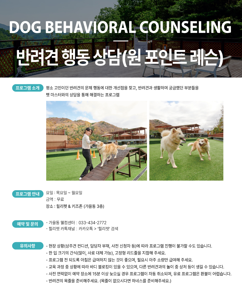 힐리펫 프로그램 일정은 변동될 수 있어 아래 링크 클릭 후 확인해 주세요
